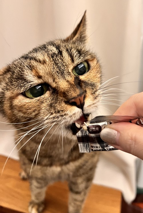 ☺︎ キナコちゃんに #猫用うまみペースト をお試し頂きました😊 袋を開けるなり食いつき◎ がっつ