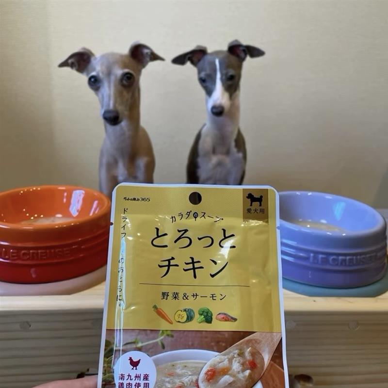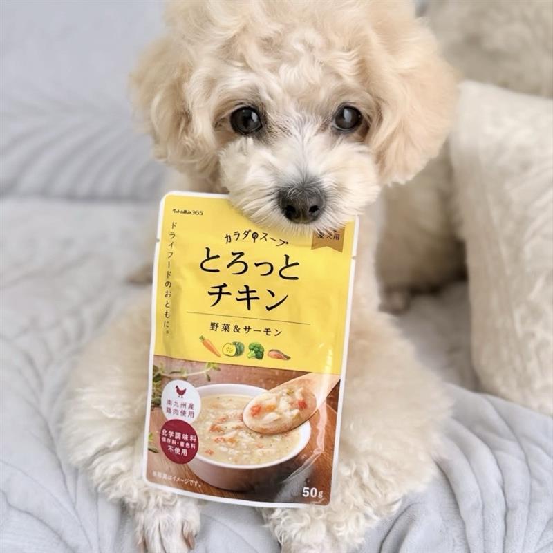 てっちゃんとアルのお出かけの必需品カラダのスープ さらっとチキン🥣さらっとしていて飲みやすく、無理なくおいしく水分補給ができちゃいます🥣🐓やさしい味わいだから、いつものごはんにかけたり、そのままでも🙆♀️