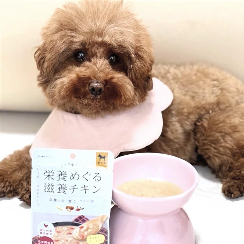 高齢人参や霊芝配合で、毎日の活力チャージに✨食欲の落ちているシニア犬や、一日中お出かけの日、病気や術後など元気になってほしい時にオススメだよ💪